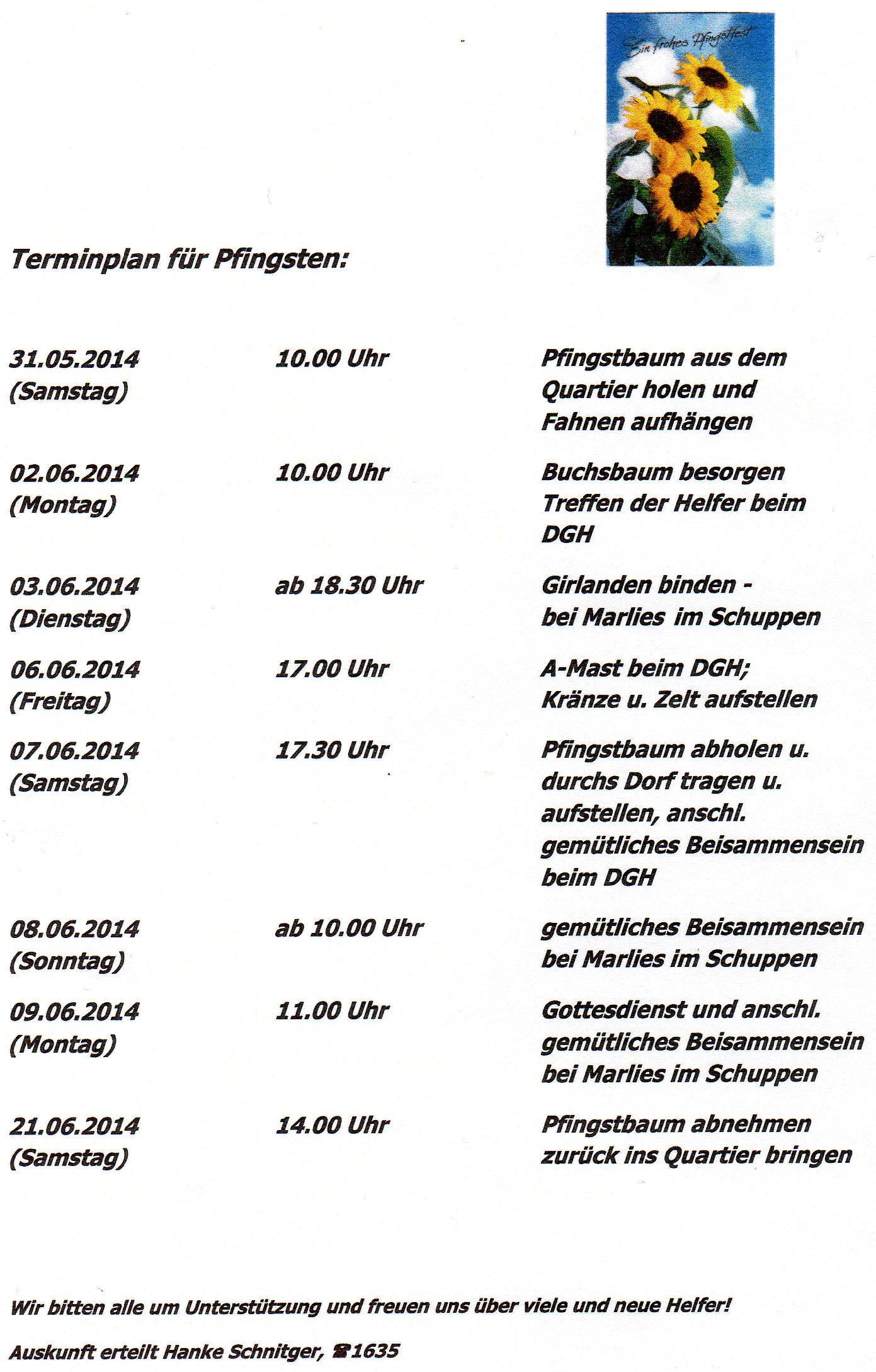 Wir hoffen das wir dieses Jahr mal wieder den Pfingstbaum tragen.