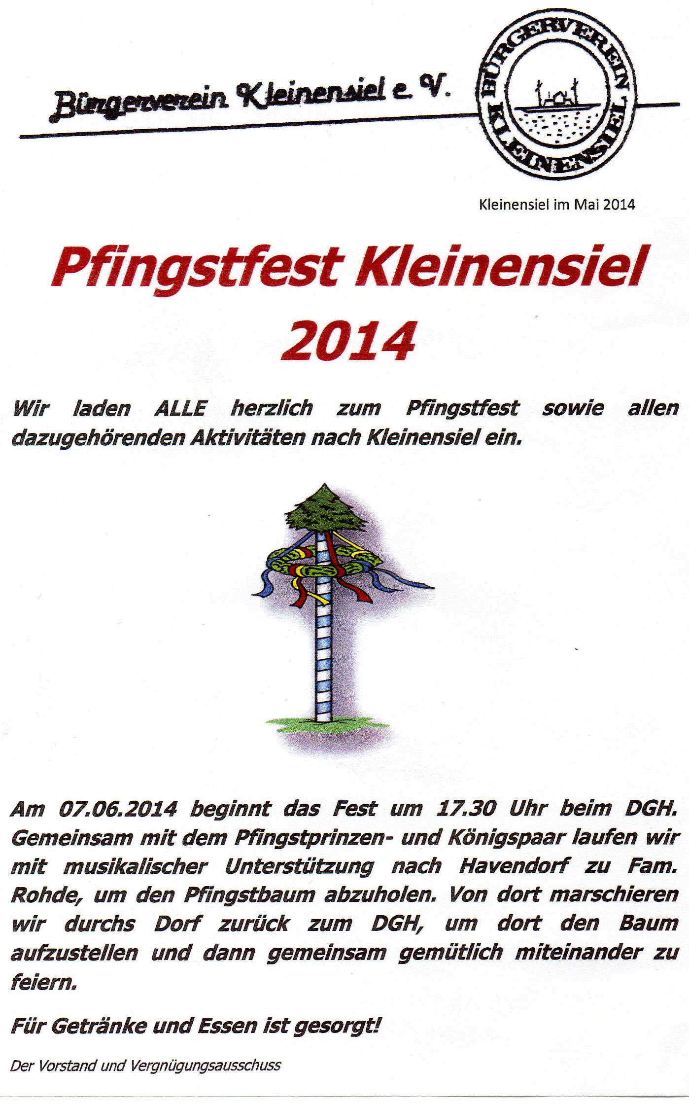 Frohe Pfingsten wünscht der Bürgerverein Kleinensiel.