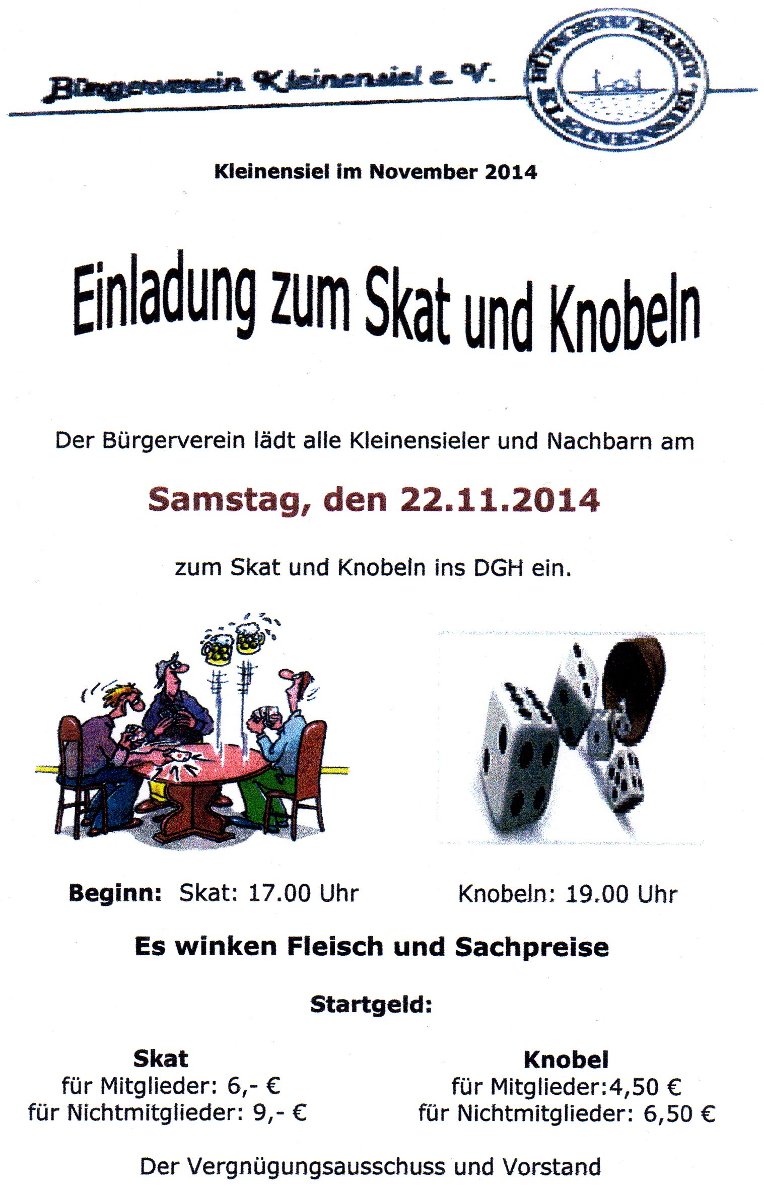 Wir hoffen das viele zum Skat und Knobeln kommen.