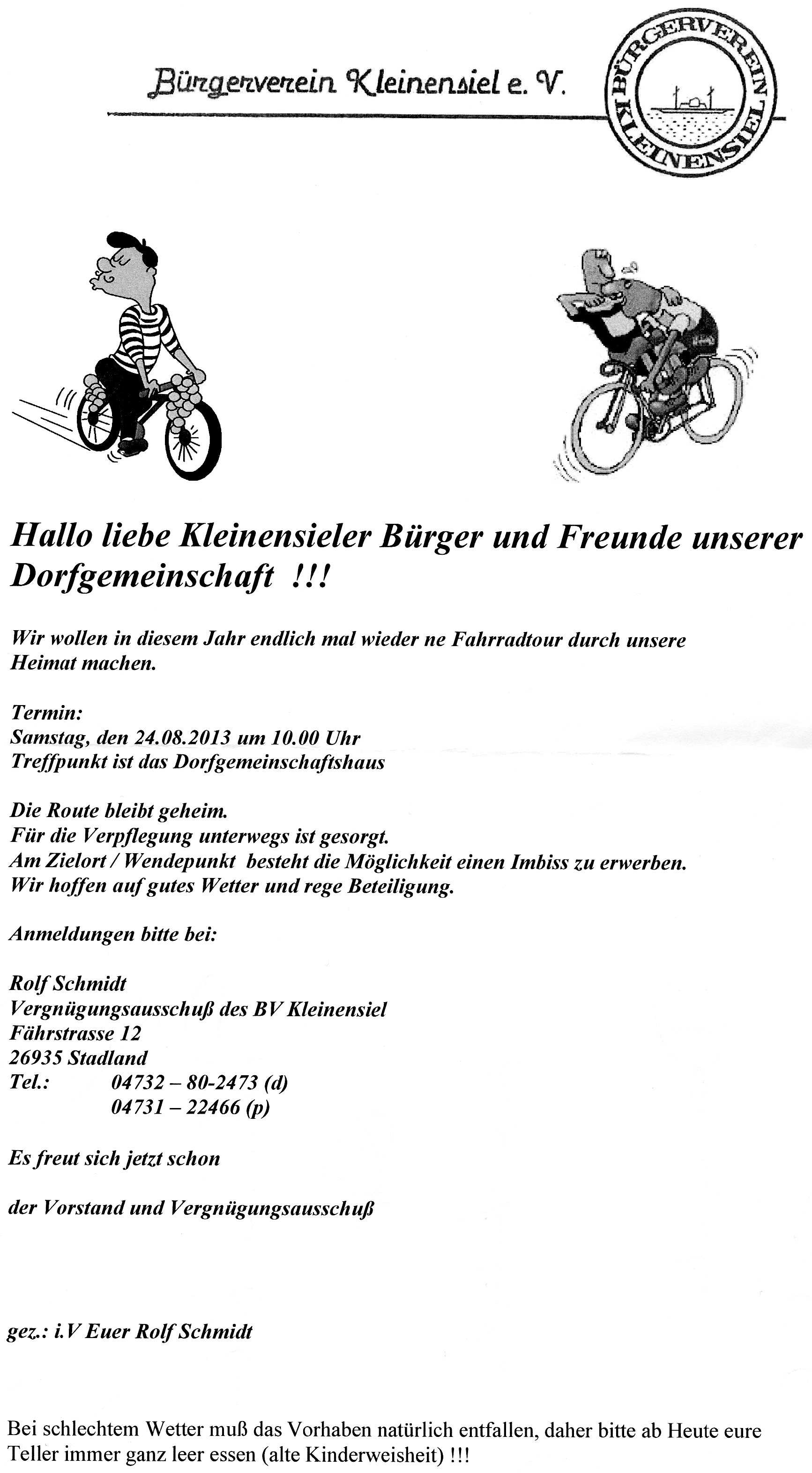 Ich wünsche allen viel Spaß, kann leider nicht mit fahren, bin krank. Aber keine Sorge Schmiddy hat alles unter Kontrolle.