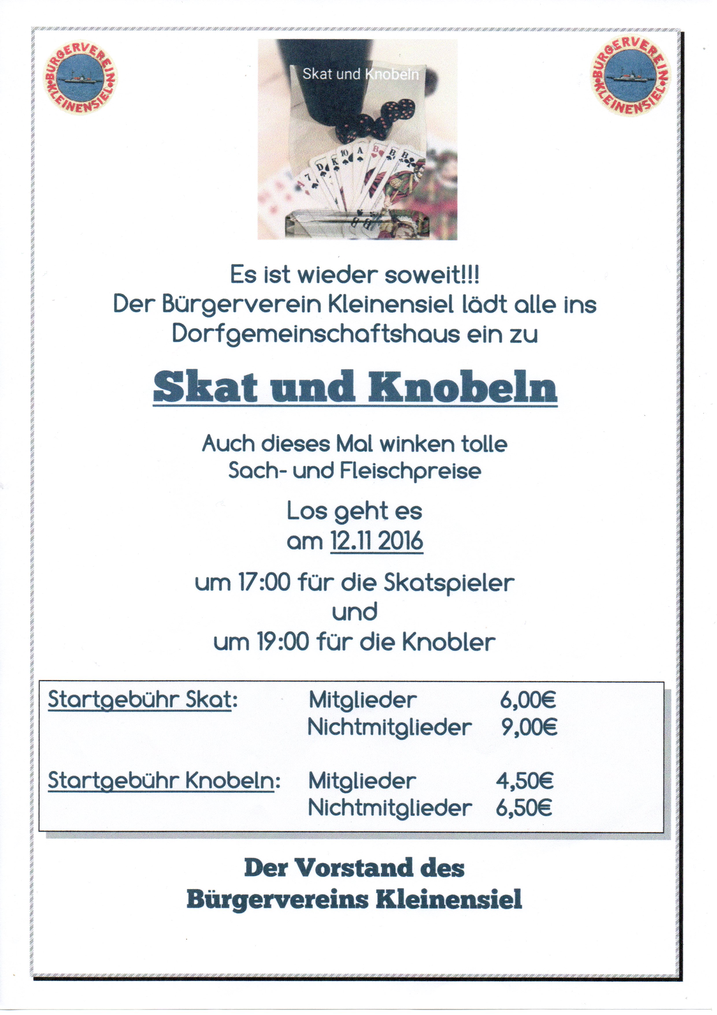 Dieses mal wird der Bürgerverein wieder die Weihnachtsfahrt für 2 Personen verlosen. Sarki stiftet den Dorfgemeinschaftshauspreis fürs Knobeln und für die Skat-spieler.