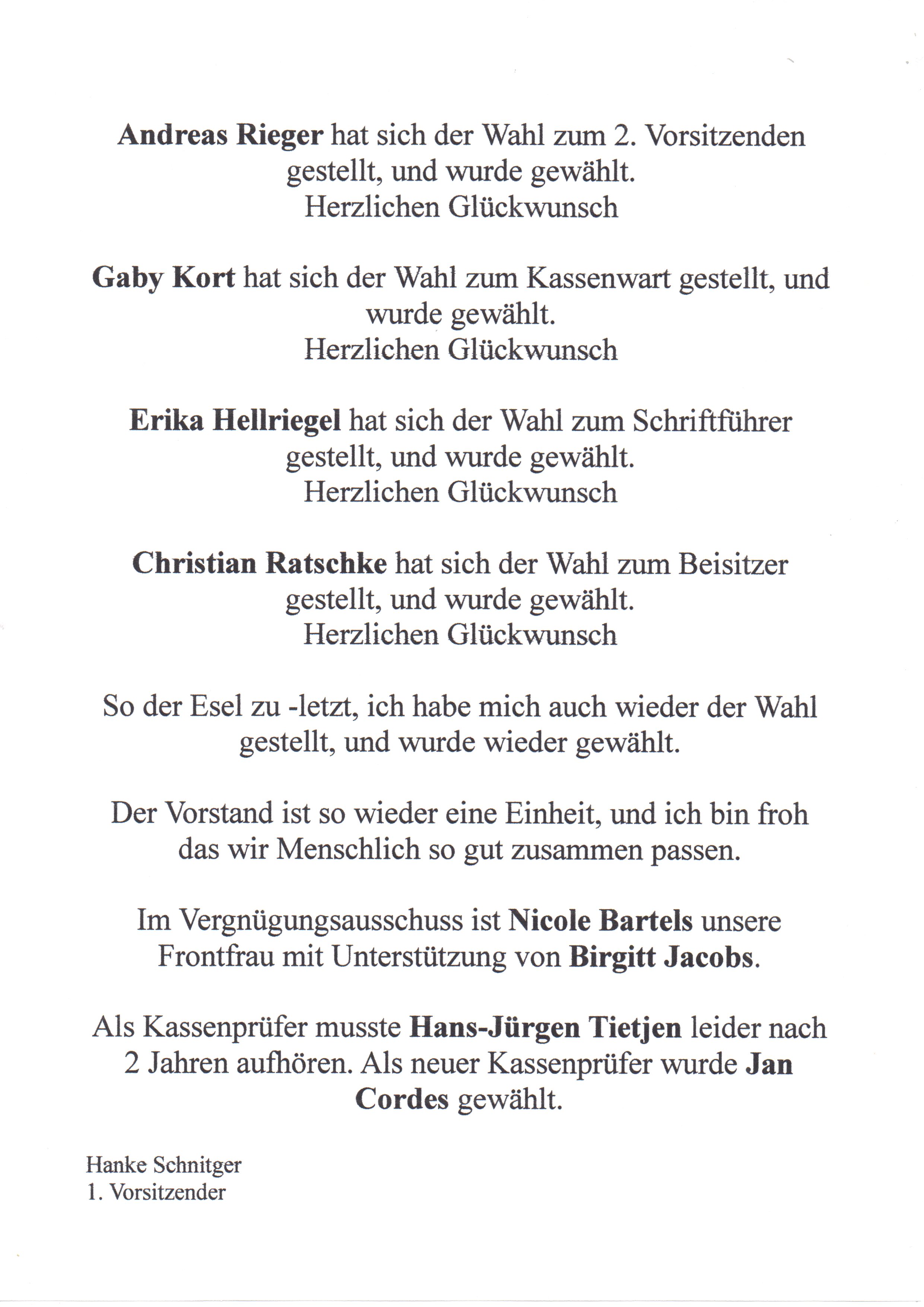 Das war für mich viel Arbeit einen neuen Vorstand zu finden. Ich freue mich das wir im Vorstand durch jung und alt vertreten sind.